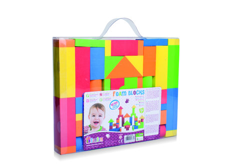 Zestaw składający się z 46 klocków, wykonanych z pianki dla małego konstruktora. Przeznaczone dla dziecka od 18 m-ca życia. Intensywne kolory klocków rozwijają percepcję dziecka. Zestaw daje niepowtarzalną okazję do rozwinięcia wyobraźni, zdolności manualnych oraz koordynacji ruchowej. Poprzez zabawę dziecko uczy się logicznego myślenia, posługiwania się przedmiotami i dopasowywania ich od siebie.