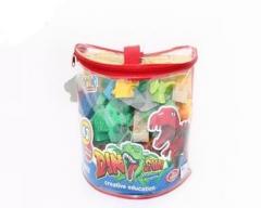 Zestaw 43 klocków w torbie. Klocki zawierają elemnty potrzebne do zabawy dinozaurami.