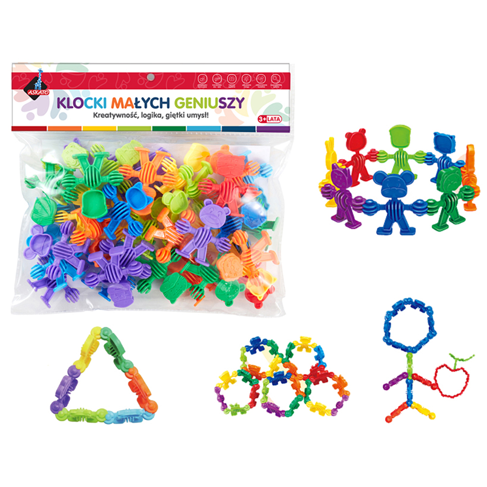 Zestaw zawiera 34 figurki w 8 podstawowych kolorach.