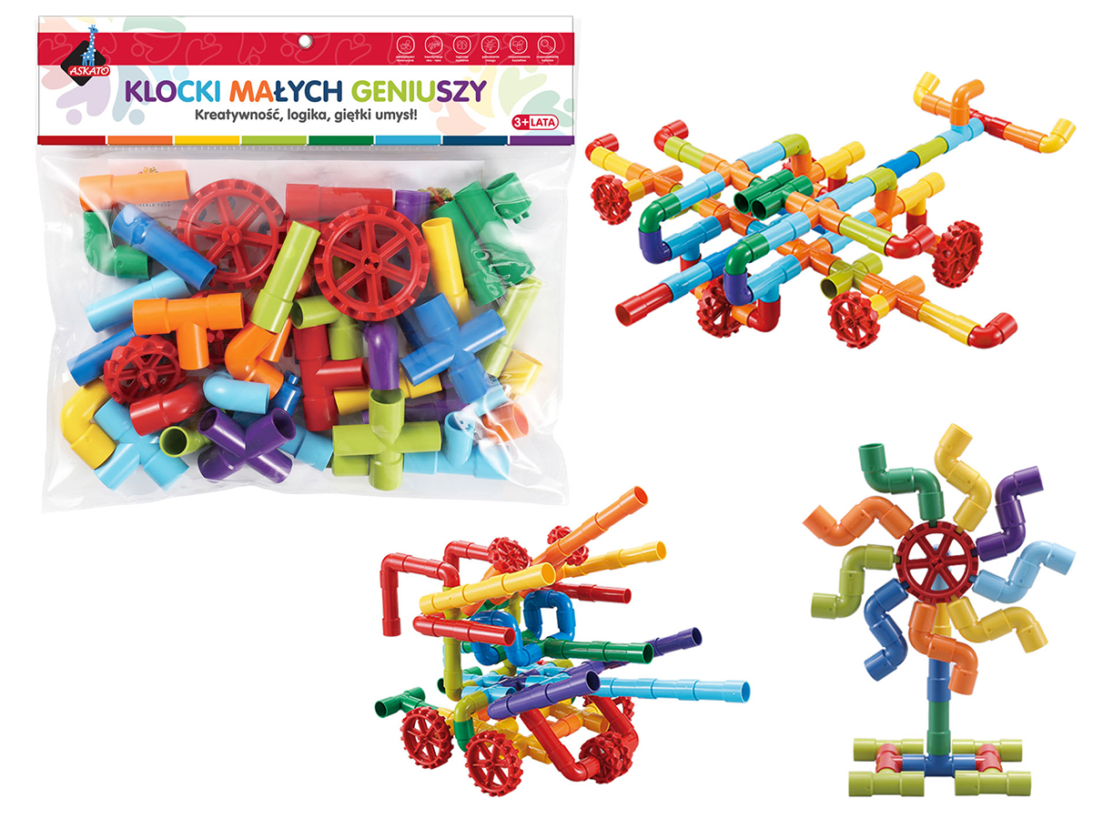 Edukacyjne klocki o unikatowej formie złączekRóżnorodność form klocków pozwala połączyć je w wiele kombinacji, dzięki czemu można tworzyć mnóstowo ciekawych i kolorowych przedmiotów.Zestaw zawiera 44 elementy w 8 kolorach. Wiek: 3+Wymiary opakowania: 31x5x27 cm