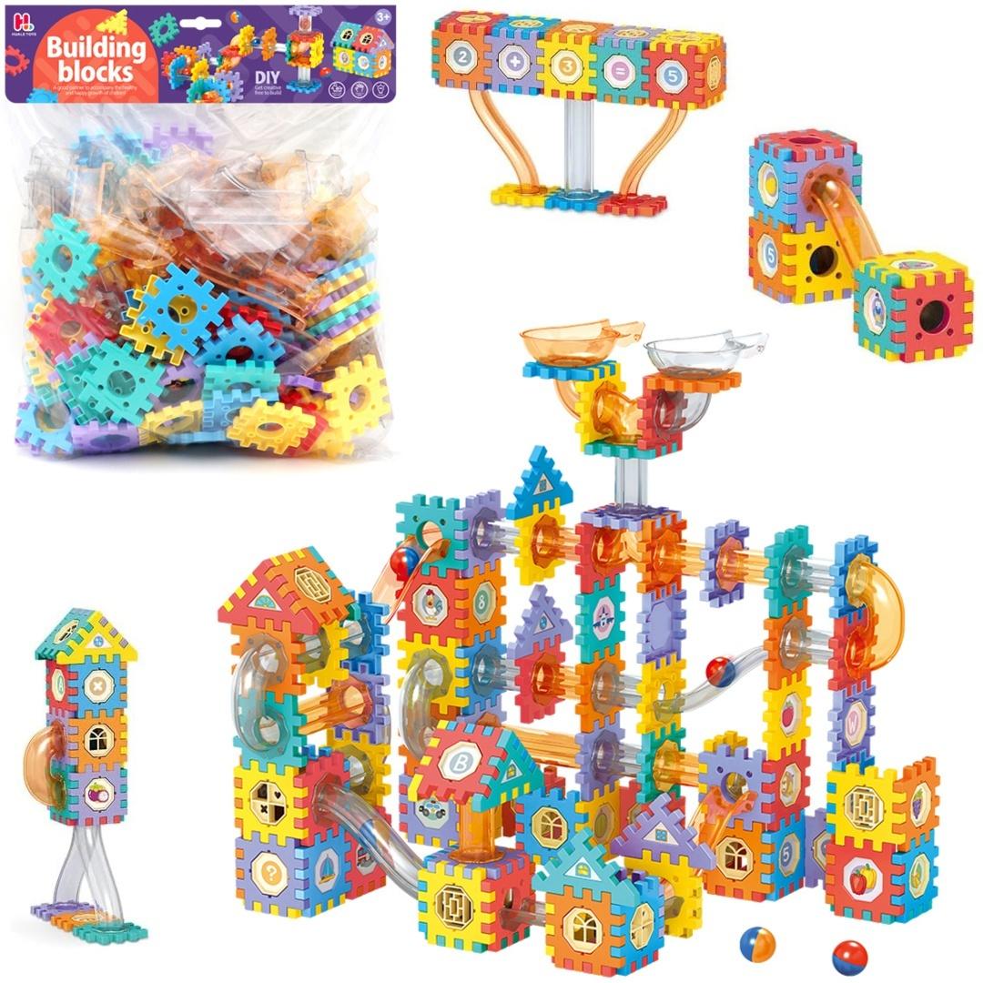 Klocki Konstrukcyjne "Building Blocks" - Zjeżdżalnia dla Kulek Garaż Kulodrom DIY Przedstawiamy innowacyjne klocki konstrukcyjne "Building Blocks", które pozwalają na stworzenie fascynującej zjeżdżalni dla kulek, znanej również jako kulodrom lub garaż kulodrom! Ten wszechstronny zestaw to prawdziwa gratka dla małych inżynierów i budowniczych, oferująca nieograniczone możliwości tworzenia skomplikowanych torów dla kulek. Nieograniczone Możliwości Konstrukcyjne: Zestaw zawiera różnorodne elementy, takie jak kolorowe klocki modułowe (kwadratowe, trójkątne), które można łączyć ze sobą, tworząc stabilne konstrukcje. Najważniejsze są jednak specjalne elementy, które pozwalają na budowanie torów dla kulek: Klocki z otworami i tunelami: Umożliwiające prowadzenie kulek przez wnętrze konstrukcji. Elementy zjeżdżalni i rynien: Przezroczyste, zakręcone i proste fragmenty, po których kulki mogą się toczyć. Dodatkowe akcesoria: Takie jak "miski" czy "rampy" do startu i lądowania kulek. Kulki: Kilka kolorowych kulek do uruchomienia na zbudowanym torze. Dzięki systemowi "DIY" (Zrób To Sam) dzieci mogą projektować i budować unikalne zjeżdżalnie, które rozwijają się w przestrzeni, oferując niezliczone warianty zabawy. Rozwój Kluczowych Umiejętności: Zabawa tymi klockami to doskonały sposób na: Rozwój myślenia przestrzennego i logicznego: Planowanie i budowanie toru wymaga przewidywania ruchu kulek. Wspieranie kreatywności i wyobraźni: Dzieci mogą tworzyć własne, skomplikowane konstrukcje. Naukę zasad fizyki: Obserwacja ruchu kulek, grawitacji, prędkości. Rozwój zdolności manualnych i precyzji: Łączenie i dopasowywanie elementów. Rozwiązywanie problemów: Znajdowanie rozwiązań, gdy kulka utknie lub tor nie działa poprawnie. Kolorowe i Bezpieczne Materiały: Klocki występują w żywych, transparentnych i matowych kolorach (żółty, czerwony, niebieski, zielony, pomarańczowy, fioletowy, różowy), które przyciągają uwagę i zachęcają do zabawy. Wykonane są z wysokiej jakości, bezpiecznego i trwałego tworzywa sztucznego, co gwarantuje długie godziny beztroskiej zabawy. Specyfikacje: