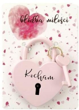 Kłódka miłości w różowym kolorze, z kluczykiem.