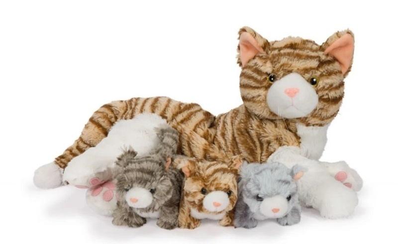 Urocza kocia mama marki Cozy Noxxiez zachwyca miękkością i pokaźnymi rozmiarami. Ma długość ok. 50 cm. Szerokość brzuszka - ok. 15 cm. Wykonana z wysokiej jakości pluszu kotka ma brzuszek otwierany na zamek błyskawiczny. W nim mieszczą się 3 kocięta o długości ok. 18 cm. W zestawie także do złożenia samodzielnego: tekturowy, kolorowy domek w formie otwartego pudełeczka.
