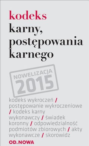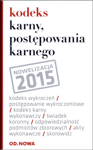Kompletny, zaktualizowany zbiór aktów prawnych. Kodeks oprócz ustawy tytułowej zawiera szereg ustaw pokrewnych takich jak: Kodeks Wykroczeń, Postępowania w sprawach o wykroczenia, czy Kodeks Karny Wykonawczy. Kodeks uwzględnia nie tylko dotychczasowe nowelizacje, ale również zmiany oczekujące na wejście w życie, które zostały wyróżnione ramką. Kodeks zaopatrzony jest w skorowidz ułatwiający szybkie wyszukiwanie potrzebnych informacji za pomocą hasła tematycznego. Zredagowane w przejrzysty i estetyczny sposób w trwałych, plastikowych okładkach.