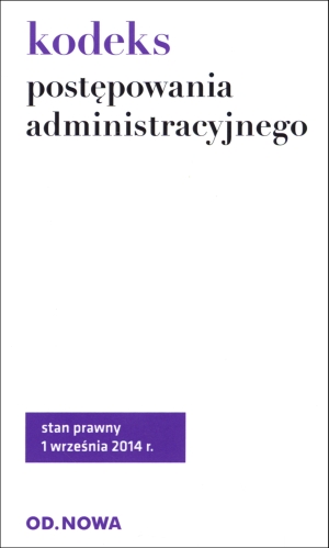 Najnowsza aktualizacja kodeksu postępowania administracyjnego. Publikacja zawiera tekst jednolity ustawy wraz z przepisami wprowadzającymi. Zaletą książki jest jej praktyczny, poręczny format, przejrzysty układ graficzny i niska cena. Łatwą orientację w materiale umożliwia obszerny skorowidz. Zmiany oczekujące na wejście w życie umieszczono w ramkach. Kodeks został opracowany przez były zespół redakcyjny Wydawnictwa Park. Stan prawny: 1 września 2014 r.