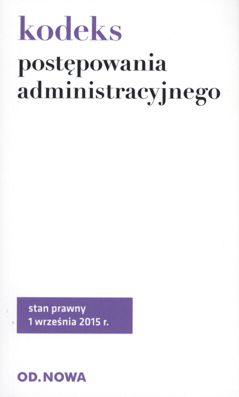 Najnowsza aktualizacja kodeksu postępowania administracyjnego. Publikacja zawiera tekst jednolity ustawy wraz z przepisami wprowadzającymi. Zaletą książki jest jej praktyczny, poręczny format, przejrzysty układ graficzny i niska cena. Łatwą orientację w materiale umożliwia obszerny skorowidz. Zmiany oczekujące na wejście w życie umieszczono w ramkach. Stan prawny: 1 września 2015 r.