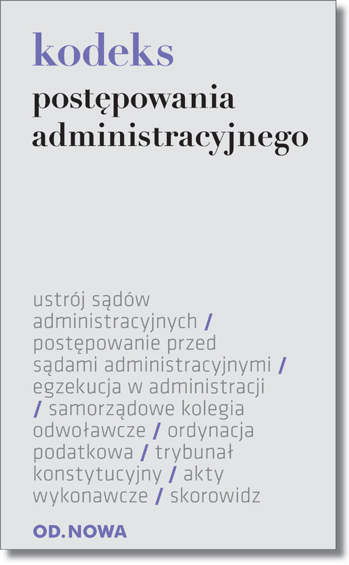 Ponad 600-stronicowy zbiór ustaw i rozporządzeń dotyczących postępowania administracyjnego. Oprócz najbardziej istotnego dla tej tematyki, kodeksu postępowania administracyjnego, w zbiorze zawarto również przepisy dotyczące sądów administracyjnych i egzekucji administracyjnej, a w tym: prawo o ustroju sądów administracyjnych, prawo o postępowaniu przed sądami administracyjnymi oraz ustawę o postępowaniu egzekucyjnym w administracji. Uwzględniono obszerną nowelizację postępowania sądowo administracyjnego, dokonaną w 2015 r. Dodatkowo tom zawiera najważniejsze przepisy prawa podatkowego (m.in. Ordynacja podatkowa), ustawę o samorządowych kolegiach odwoławczych, ustawę o Trybunale Konstytucyjnym, a także zupełnie nowy akt prawny - ustawę o petycjach. Większość ustaw wyposażona jest w komplet rozporządzeń. Stan prawny: 1 września 2015 r.