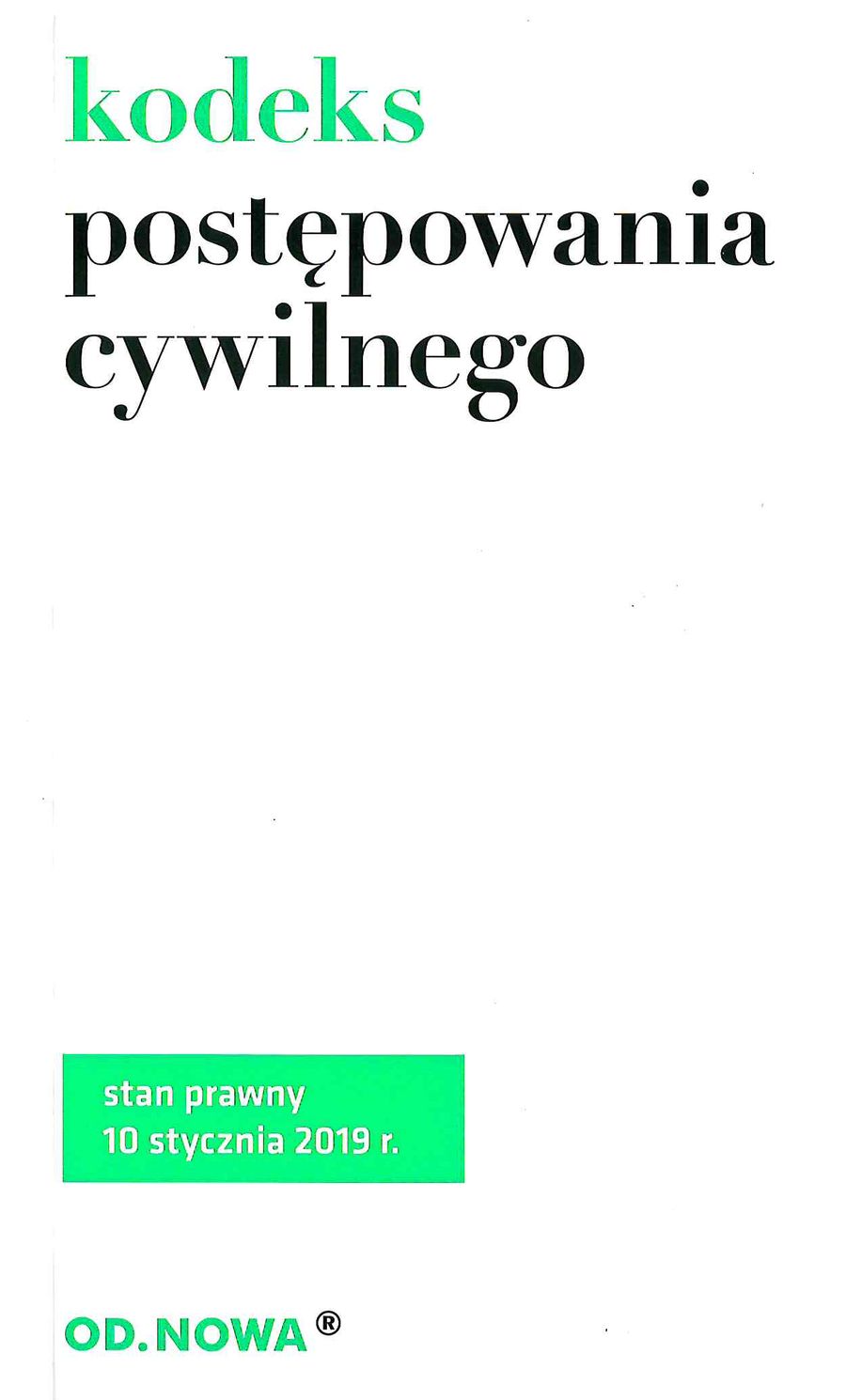 Kodeks postępowania cywilnego oraz wybrane przepisy zmieniające KPC (wyciągi). Poprzez system przypisów publikacja umożliwia studentom i praktykom łatwe śledzenie zmian prawnych. Zaletą książki jest jej praktyczny, poręczny format, przejrzysty układ graficzny i niska cena. Łatwą orientację w materiale umożliwia obszerny skorowidz. Stan prawny: styczeń 2019 r. Przepisy wchodzące w życie później niż podany stan prawny aktu prawnego ale już ogłoszone w Dzienniku Ustaw podajemy w ramkach z zachowaniem przepisu w dotychczas obowiązującym brzmieniu.