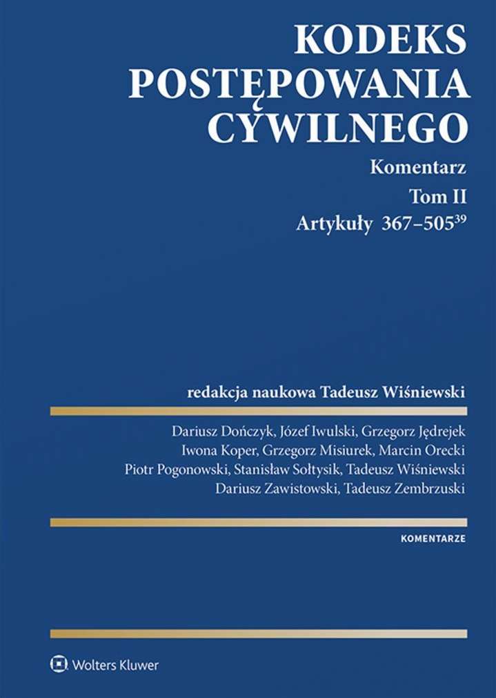 Tom II komentarza pod redakcją naukową prof. dr. hab. Tadeusza Wiśniewskiego obejmuje art. 367-505(39) ustawy - Kodeks postępowania cywilnego, regulujące m.in. tematykę środków odwoławczych, kasacji, wznowienia postępowania oraz postępowań odrębnych. Zawiera omówienie wszystkich zmian w Kodeksie, które miały miejsce w ostatnim czasie.