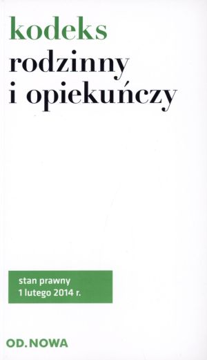 Najnowsza aktualizacja kodeksu rodzinnego i opiekuńczego. Publikacja zawiera tekst jednolity ustawy wraz z przepisami wprowadzającymi.Zaletą książki jest jej praktyczny, poręczny format, przejrzysty układ graficzny i niska cena. Łatwą orientację w materiale umożliwia obszerny skorowidz. Zmiany oczekujące na wejście w życie umieszczono w ramkach.Kodeksy zostały opracowane przez były zespół redakcyjny Wydawnictwa Park.Stan prawny: 1 lutego 2014 r.