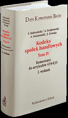 Kodeks spółek handlowych. Komentarz do artykułów 459-633. Tom IV obejmuje komentarz do przepisów regulujących rozwiązanie spółki akcyjnej i odpowiedzialność cywilnoprawną dotyczącą tej spółki oraz zawiera obszerne omówienie łączenia, podziału i przekształcenia spółek uwzględniające specyfikę każdego z tych procesów, orzecznictwo i nowe poglądy doktryny. Szczegółowo została przedstawiona także problematyka odpowiedzialności karnej w spółkach handlowych oraz zmian w przepisach obowiązujących, przejściowych i końcowych. Dzieło uwzględnia nowelizację przepisów dotyczących łączenia się spółek, wprowadzającą m.in. instytucję transgranicznego łączenia się spółek kapitałowych i spółki komandytowo-akcyjnej. Dzieła z serii Duże Komentarze Becka należą do najobszerniejszych na rynku wydawniczym komentarzy omawiających najważniejsze ustawy systemu prawnego. Dzięki wiedzy Autorów - wybitnych znawców poszczególnych dziedzin prawa - tworzą one kanon literatury prawniczej. Uporządkowana struktura tekstu, powoływanie orzeczeń, glos oraz literatury, rozszerzających określoną tematykę, ułatwiają zdobycie wyczerpującej wiedzy z poszczególnych dziedzin prawa.