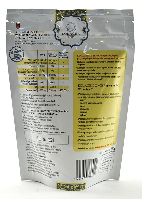 Wartości odżywcza Kolagen NCN Rybi 95% + 5% Witaminy C Piękno 100g