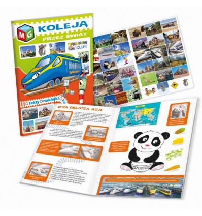 W książce znajdziecie wiele ciekawostek, kolorowych naklejek, kolorowanek i zadań do wykonania. Podróżując różnymi pociągami odwiedzicie kontynenty, kraje i krainy. Dowiecie się: Czym jest Orient Express? Gdzie mieszkają torbacze? W którym kraju jeździ najwięcej szybkich pociągów? W serii "" Zakręcona Kolejka"" znajdziecie też rodzinną super grę z ruchomą obrotnicą oraz inne książeczki o tematyce kolejowej i podróżniczej.