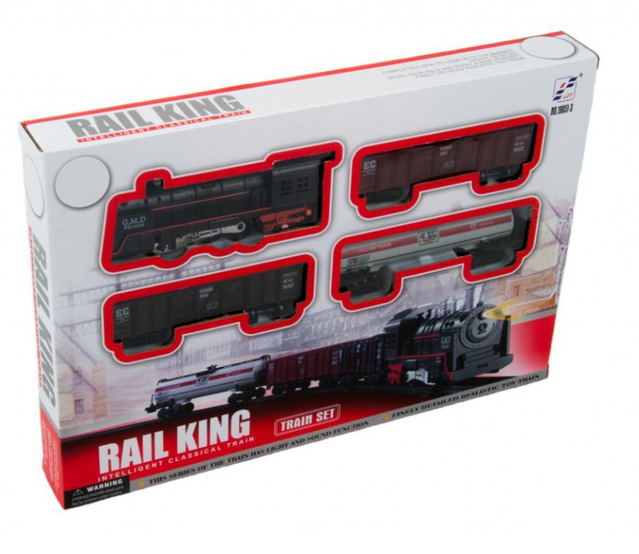 Kolejka elektryczna RAIL KING średnia osobowa z owalnym torowiskiem i funkcjami dymu, światła i dźwięku. Zasilanie: 4xAA (brak w zestawie).