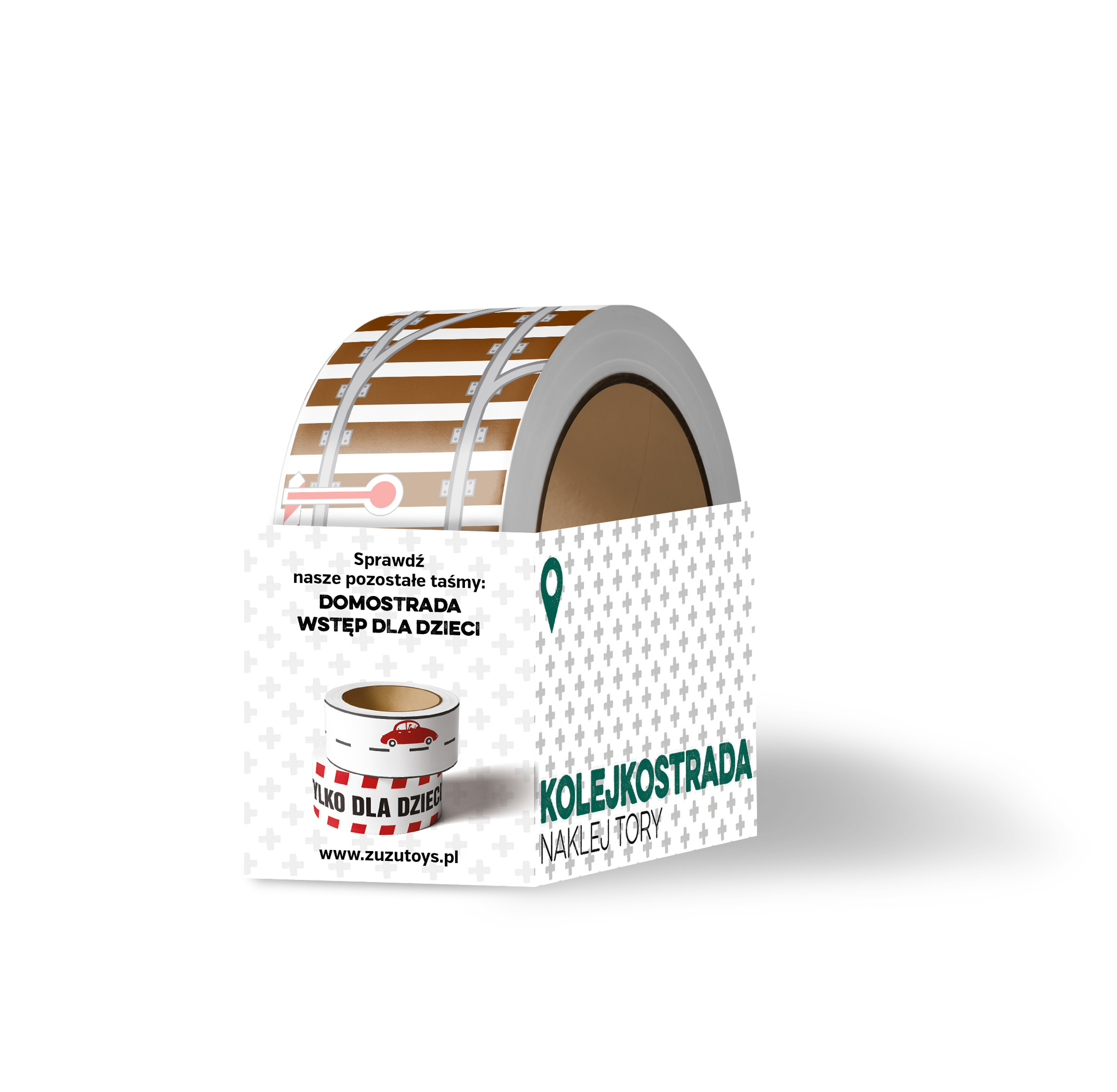 Kolejkostrada to prosty pomysł na godziny zabaw. Wystarczy nakleić taśmę na podłogę i bawić się kolejkami.Długość 50 metrów.