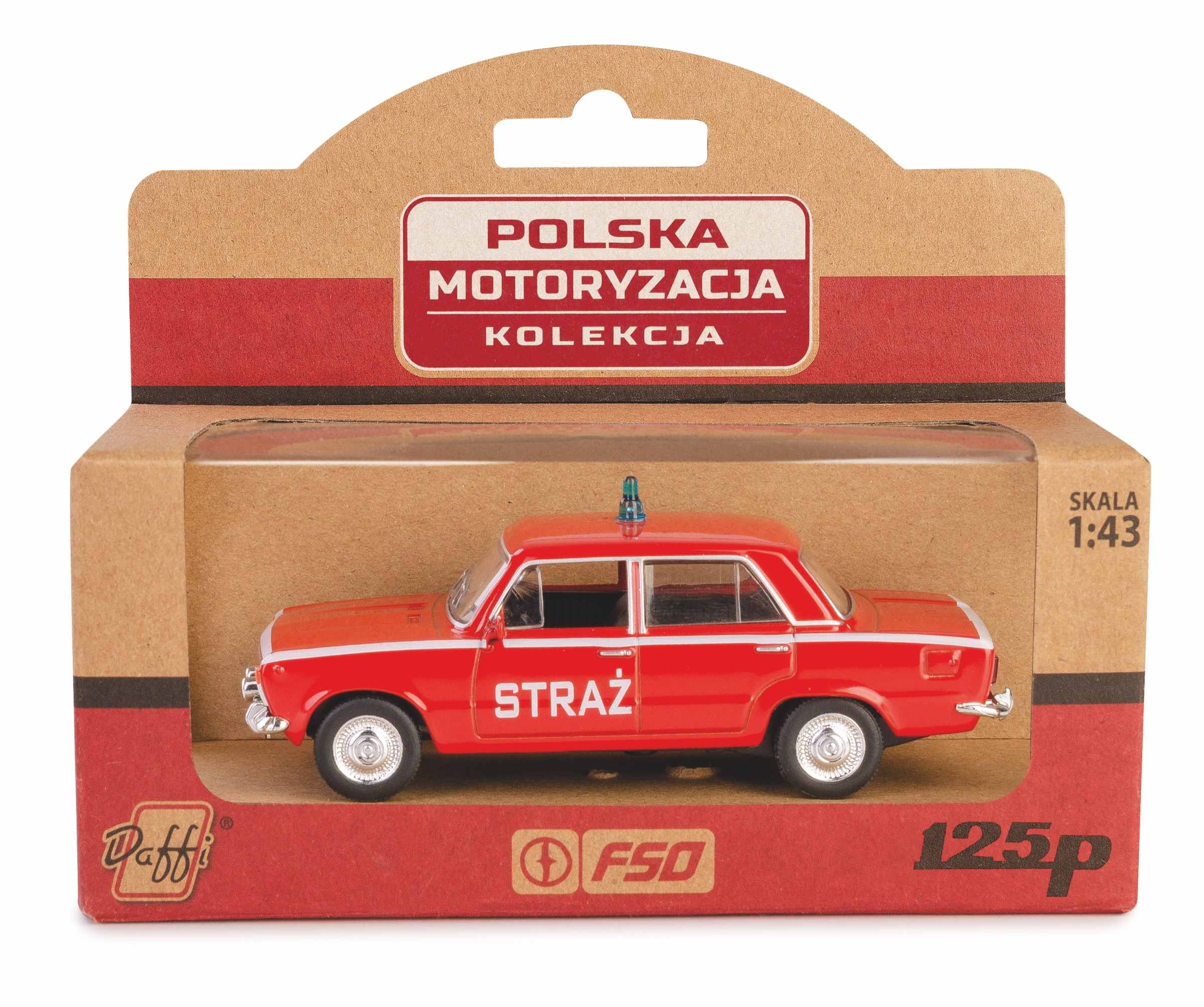 Historyczny samochód produkowany w czasach PRL-u. Model wykonany z metalu, z elementami plastikowymi w skali 1:43. Dostępne kolory: czerwony, żółty UWAGA! Towar wybierany losowo.