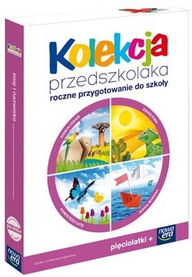 Ciekawy jest świat, gdy się ma pięć lat!Pakiet ,,Roczne przygotowanie do szkoły: Pięciolatki +"" to niezwykle ważny element ,,Kolekcji przedszkolaka"". Dzięki niemu ta wyjątkowa seria staje się kompletna, oferując oryginalny, całościowy pomysł na edukację przedszkolną - od malucha do starszaka. Nauczyciele mają teraz do dyspozycji zestaw publikacji umożliwiających im konsekwentne i efektywne przygotowanie swoich podopiecznych do podjęcia nauki w klasie pierwszej.W skład pakietu dla dziecka wchodzą czteroczęściowe ,,Karty pracy"" w zeszytach, a także ,,Pomoce dydaktyczne"", ,,Teczka małego artysty"", ,,Mój zeszyt"" i unikalna książeczka z trzecią częścią przygód młodszego rodzeństwa Świerszczyka: ,,Baj, Bajeczka i zaczarowana owieczka"". Dzieci otrzymują również ołówek z nakładką, bo przecież to już czas, aby przyzwyczajać się do dobrego chwytu narzędzia pisarskiego potrzebnego przy ćwiczeniach grafomotorycznych! Pakiet pięciolatka obejmuje wszystkie obszary edukacyjne zalecane przez podstawę programową, a tym samym pozwala doskonalić wszystkie umiejętności składające się na gotowość szkolną dziecka. Co więcej, robi to w niezwykle atrakcyjny sposób, pobudzając dzieci do myślenia i inspirując do działania. Nauczyciel tradycyjnie zostaje wyposażony w komplet materiałów dydaktycznych, wśród których warto zwrócić uwagę na szeroki wybór nowych zabaw. Są tam i zabawy dramowe, i pamięciowe, i doskonalące umiejętności prospołeczne. Jedno jest pewne: nudy i rutyny na zajęciach nie będzie!