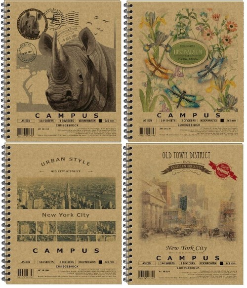 Notatnik A5, 144 kartki w usztywnianej oprawie z ruchomymi przegródkami, mix wzorów, wzór wysyłany losowo.