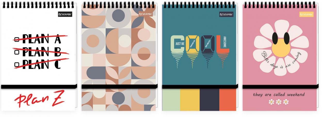 Fascynujący design - Okładka każdego notatnika ozdobiona jest modną grafiką co nadaje mu unikalnego charakteru. Miękka matowa oprawa . Czarna spirala dodaje notatnikom eleganckiego wykończenia.