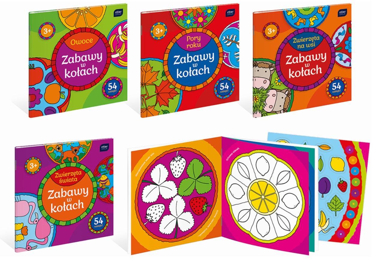 Format: 210x210 mm. Kolorowanka dla dzieci powyżej 3. roku życia. 54 naklejki w zestawie. W serii znajdują się: ,,Owoce"", ,,Pory roku"", ,,Zwierzęta na wsi"", ,,Zwierzęta świata"".