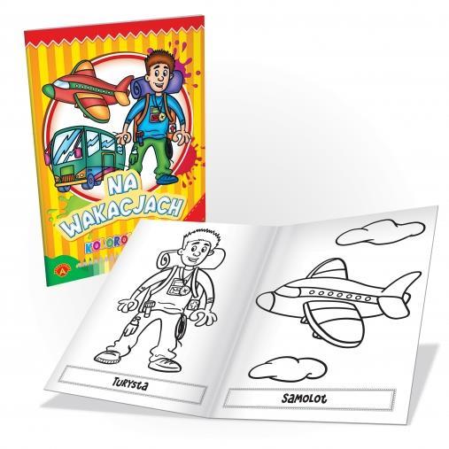 Kolorowanki to seria zeszytów podejmujących różne tematy do kolorowania dla dzieci. Każda ilustracja jest podpisana, co pomaga dzieciom uczyć się poprzez zabawę. Przyjemne i zabawne motywy sprawiają dzieciom radość.Na Wakacjach to książeczka przedstawiająca co możemy zobaczyć na wakacjach.