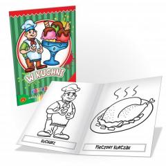 Kolorowanki to seria zeszytów podejmujących różne tematy do kolorowania dla dzieci. Każda ilustracja jest podpisana, co pomaga dzieciom uczyć się poprzez zabawę. Przyjemne i zabawne motywy sprawiają dzieciom radość.W Kuchni to książeczka przedstawiająca co można spotkać w kuchni.