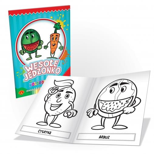 Kolorowanki to seria zeszytów podejmujących różne tematy do kolorowania dla dzieci. Każda ilustracja jest podpisana, co pomaga dzieciom uczyć się poprzez zabawę. Przyjemne i zabawne motywy sprawiają dzieciom radość.Wesołe Jedzonko to książeczka przedstawiająca uśmiechnięte warzywa, owoce i inne rodzaje jedzonka.