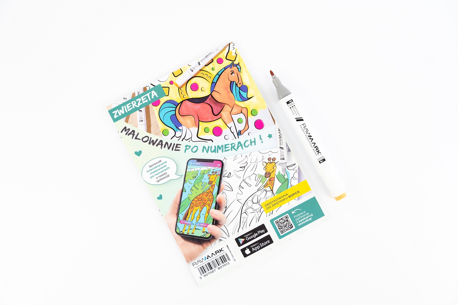 Interaktywna kolorowanka z rozszerzoną rzeczywistością, dociera do młodego pokolenia dzięki aplikacji na telefon, ciągłe powiększanie grupy odbiorców poprzez udostępnianie pokolorowanych prac w mediach społecznościowych, kompatybilna z zestawem markerów alkoholowych RAWMARK Pure Pro i Basic, aplikacja sugeruje dobór kolorów na obrazku.