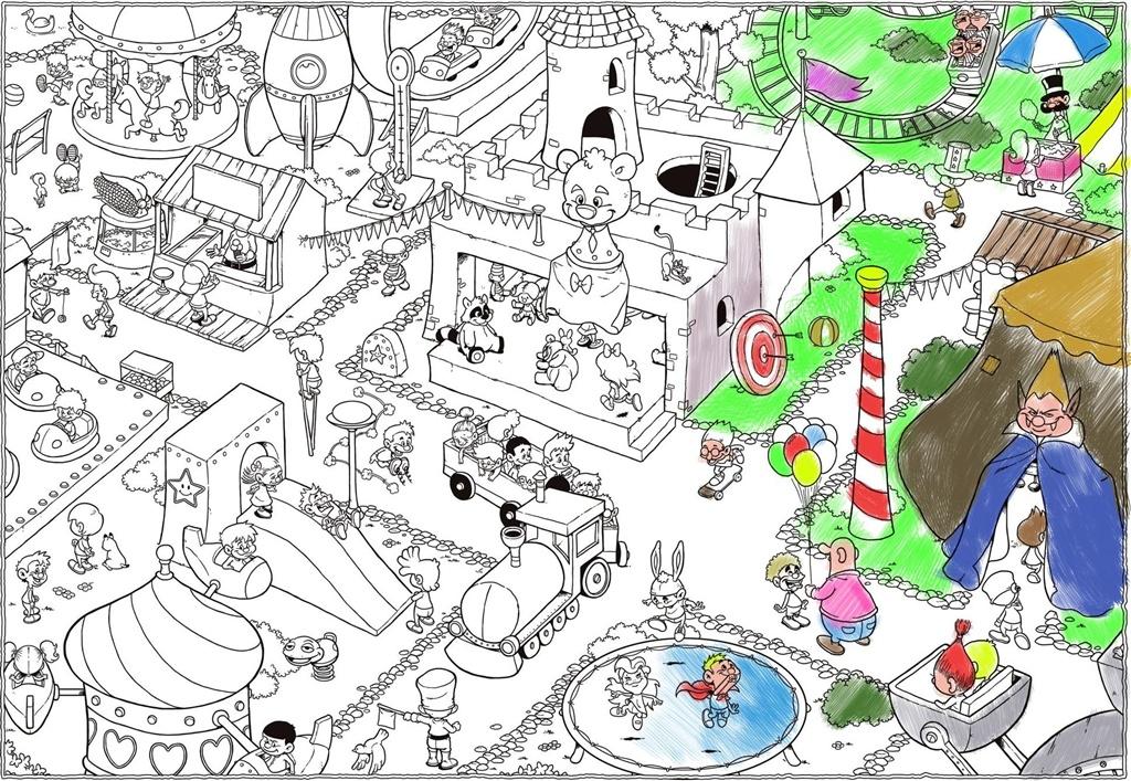 Park Rozrywki to kolejna propozycja z serii kolorowanek wielkiego formatu, otwierająca przed naszymi oczami zaczarowany świat beztroskich uciech i zabaw. Chłopcy, przyborami plastycznymi, ubarwią tutaj swoje ulubione kolejki i samochody, dziewczynki zaś przystroją willę Księżniczki i dom lalek. Lunapark kryje jednak jeszcze więcej niespodzianek, przy których tworzeniu będą mogli pomóc i starsi, i młodsi odkrywcy.Każdy kolorowanka zapakowana jest w eko neonową tubę.