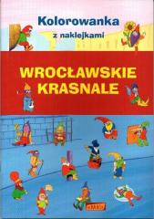 Kolorowanki dla dzieci z wrocławskimi krasnalami. Wewnątrz również kolorowe naklejki z krasnoludkami.