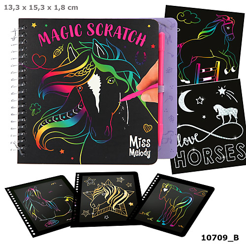 Mini Magic Scratch - Odkryj wspaniałe zdjęcia w kolorach tęczy. Obraz zarysowania powstaje, gdy zarysujesz boki dołączonym piórem.