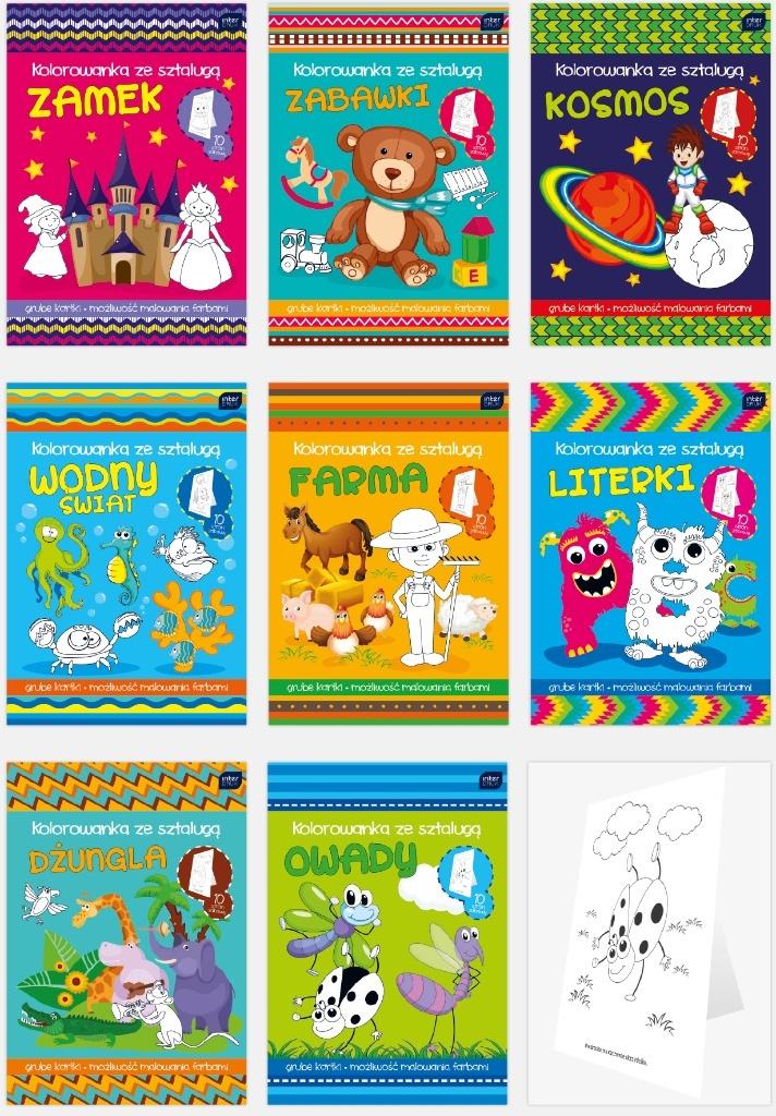 Kolorowanka ze sztalugą, grube kartki, możliwość malowania farbami, mix 8 wzorów.