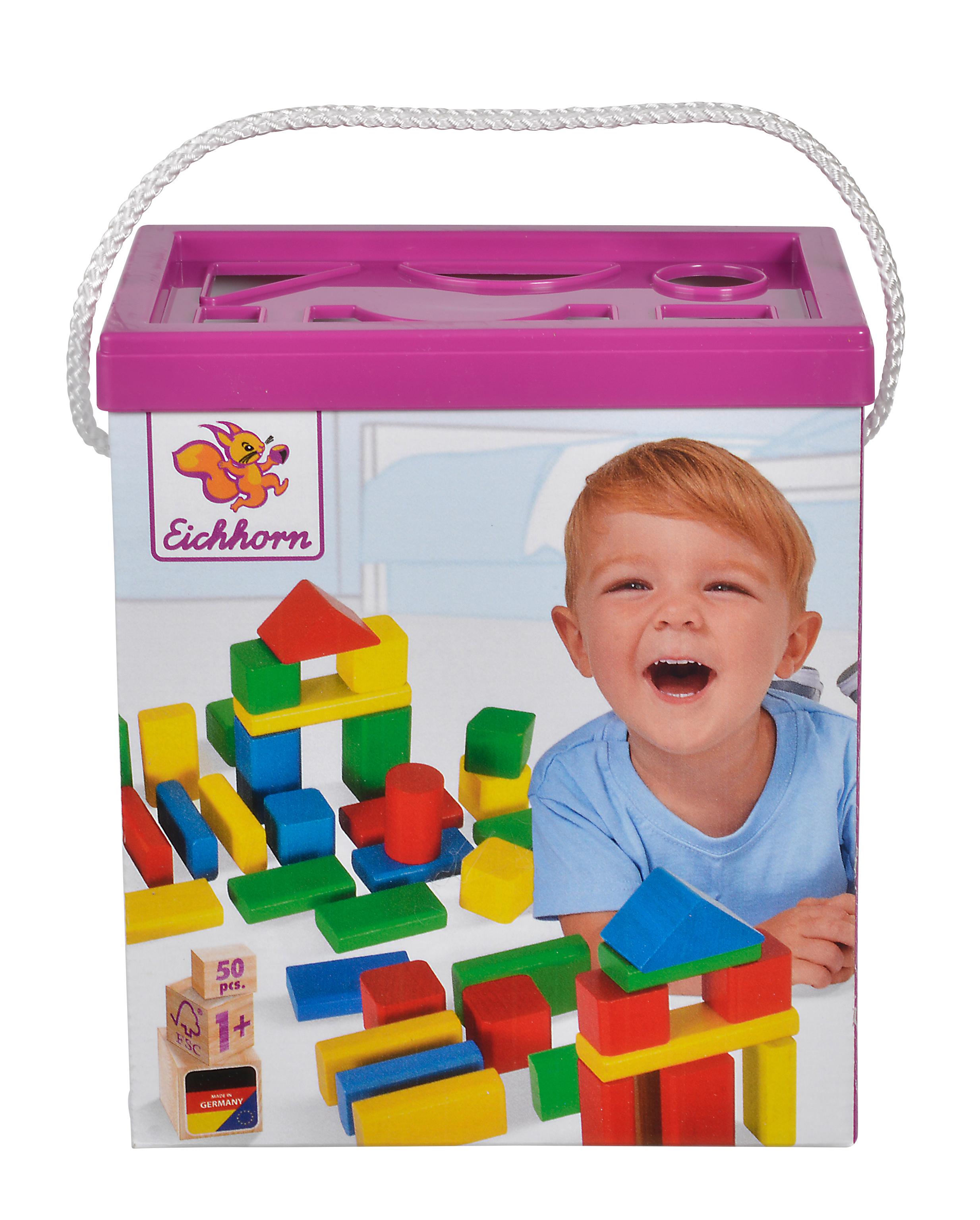 Kolorowe drewniane klocki dzieci od jednego roku Eichhorn dają możliwość uwolnienia ich kreatywności i realizacji dzieł sztuki według własnej wyobraźni. Cegły mogą być przechowywane w pudełku ponownie po zakończeniu gry.