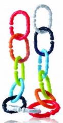 12 kolorowych pierścieni w 6 kolorach, które można ze sobą łączyć w dowolnej kolejności. Każdy z elementów posiada wypustki, dzięki czemu wspaniale sprawdzi się w roli gryzaczka. Linkę można przymocować do dziecięcego łóżeczka czy wózka samodzielnie albo zawiesić na niej ulubioną zabawkę Dzidziusia. Linki uczą rozpoznawania kolorów oraz rozwijają zdolności motoryczne Maluszka.