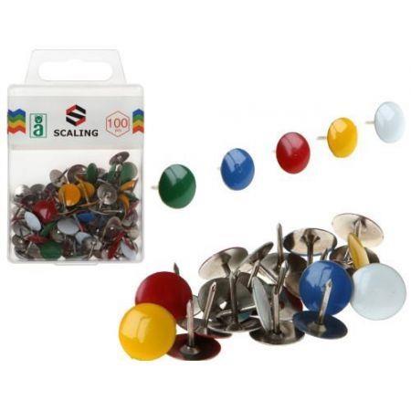 Kolorowe pinezki metalowe w pudełku, 100 szt, Scaling