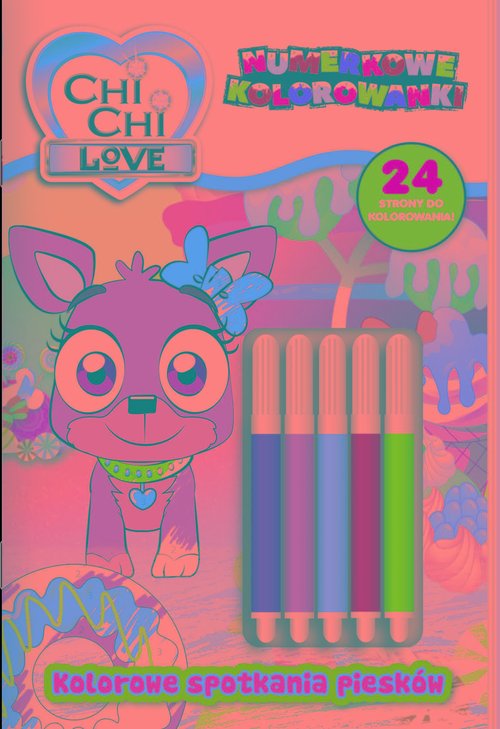 Książka Chi Chi love. Numerkowe kolorowanki. Kolorowe spotkania piesków to gwarancja doskonałej zabawy, a zarazem świetny trening kreatywności. W środku każdy fan uroczej Chi Chi Love znajdzie aż 24 niesamowite obrazki do pokolorowania. Książka zawiera też 5 flamastrów. Wystarczy sprawdzić, jakiemu kolorowi odpowiada dany numer, chwycić za flamaster, a następnie pokolorować nim odpowiedni fragment ilustracji. Nazwy kolorów w książce znajdują są w dwóch językach: polskim i angielskim. Nauka angielskiego może być jeszcze przyjemniejsza. Świat jest kolorowy!