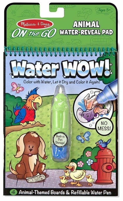 Malowanie bez bałaganu, brudzenia rąk czy ubrań! Ta książka do kolorowania zawiera cztery strony do wielokrotnego użytku i specjalny długopis wielokrotnego użytku. Należy napełnić długopis zwykłą wodą i zacząć malować po karcie. Za każdym pociągnięciem pędzelka pojawiają się koleje szczegóły! Po wyschnięciu rysunku kolory zanikają, karta nadaje się do ponownego malowania. Ta książeczka jest o zwierzętach, zawiera cztery sceny do pomalowania. Dla każdego z obrazków jest dodatkowe zadanie - maluch powinien odnaleźć poszukiwane, wskazane symbole. Długopis wodny jest łatwy do przechowywania, ma swoje miejsce w obudowie. Water WOW są idealnymi kolorowankami do podróżowania. Książeczka jest w języku angielskim.