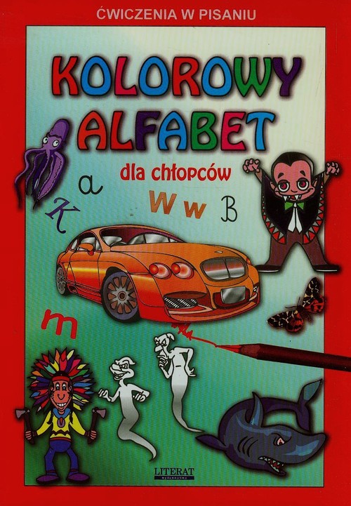 Książka do nauki pisania poszczególnych liter alfabetu oraz całych wyrazów. Zawiera pomocnicze strzałki, wskazujące jak poprawnie należy uczyć się pisać litery i łączyć je w wyrazie. Na każdej stronie znajduje się obrazek do pokolorowania o tematyce atrakcyjnej dla chłopców.