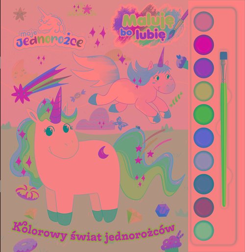 Do książki dołączona jest paleta z 10 kolorowymi farbami i pędzelek.