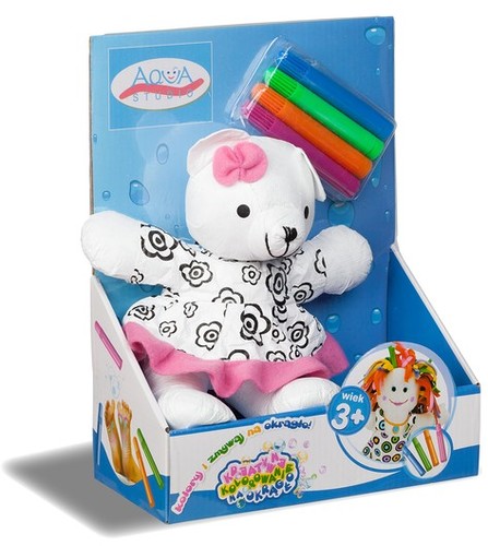 Zestaw składa się z maskotki oraz 4 markerów do kolorowania (niebieski, zielony, pomarańczowy, różowy). Zabawkę można kolorować, prać i zmywać na okrągło. Niesamowita zabawa dla każdego dziecka. Zabawka kreatywna rozwija zdolności manualne, twórczość oraz wyobraźnię. Wiek 3+