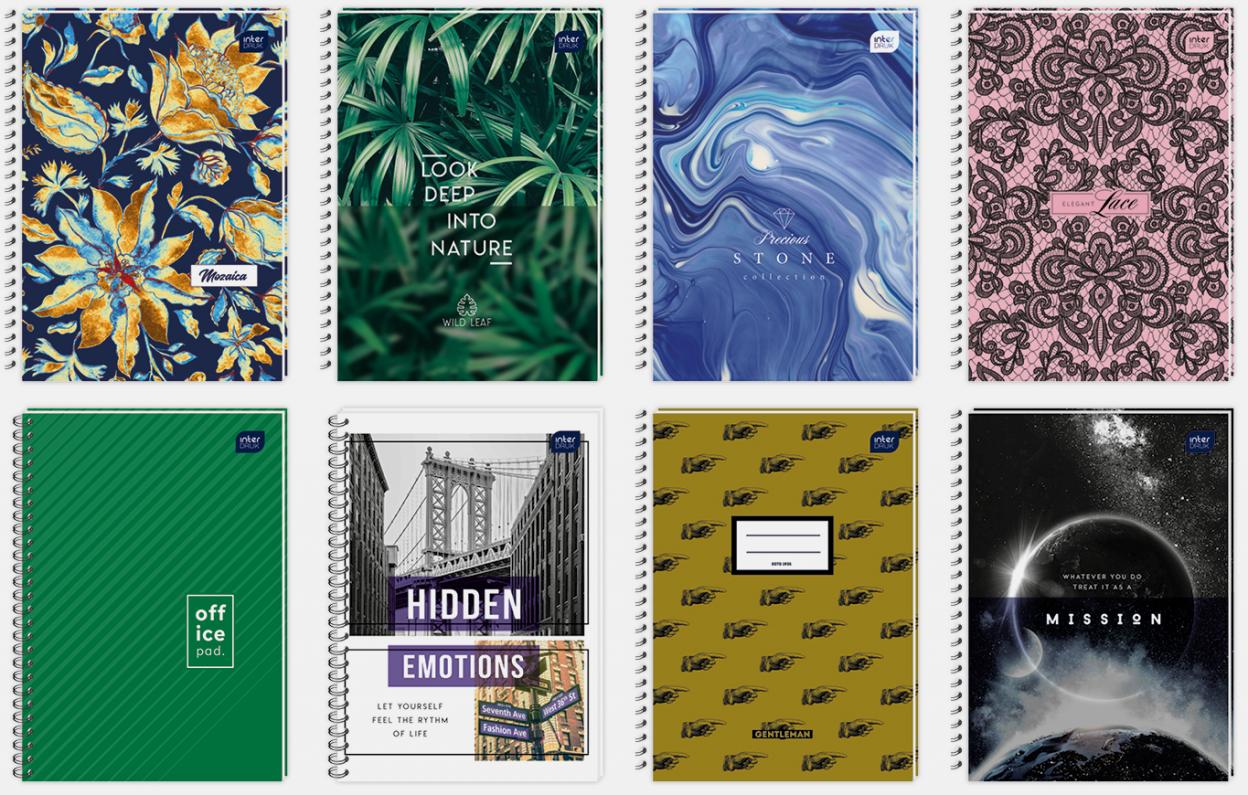 Kołozeszyt A4 w kratkę, 100 kartek, mix wzorów. 5 sztuk w opakowaniu zbiorczym. Producent Interdruk.