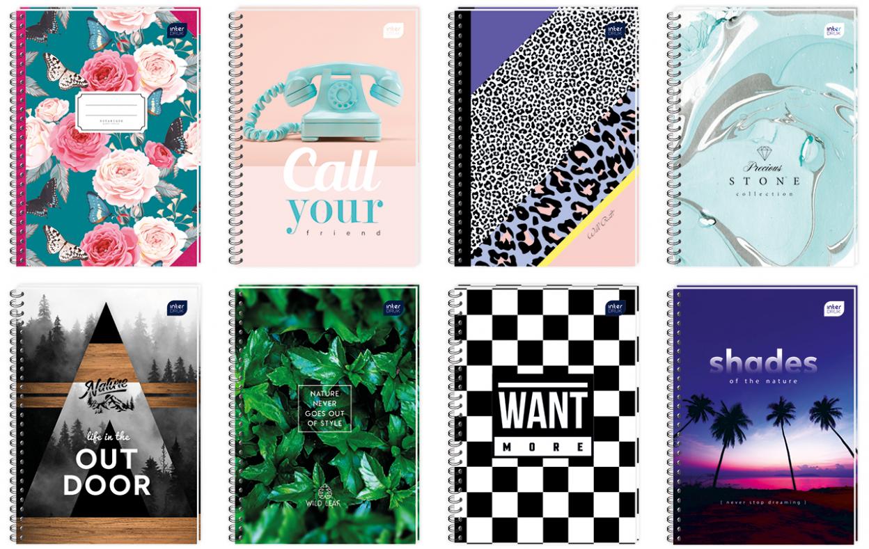 Kołozeszyt A5 w kratkę, 100 kartek, mix wzorów. 5 sztuk w opakowaniu zbiorczym. Producent Interdruk.