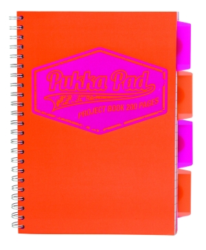 Kołozeszyt Neon B5 w kratkę marki Pukka Pads, wyposażony w 4 kolorowe przekładki, które można wyjmować i przestawiać w dowolne miejsce w zeszycie. Dodatkowo posiadają one kieszonki na etykiety do podpisania każdej z nich. Okładka w całości wykonana z polipropylenu, dodakowa przezroczysta osłona chroni przed zabrudzeniem i uszkodzeniami. Kartki z mikroperforacją dają się łatwo wyrywać. Komfort pisania zapewnia jakość papieru o gramaturze 80. Specyfikacja: - format B5 - 200 stron - okładka PP - gramatura 80 - kartki z mikroperforacją - 4 przekładki