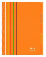 Kołozeszyt w kratkę A4 Arc marki Narcissus, wyposażony w 5 kolorowych przekładek, które można wyjmować i przestawiać w dowolne miejsce w zeszycie. Kolorowa okładka i przeźroczysta spirala są w całości wykonane z polipropylenu, dzięki czemu zeszyt jest trwały i odporny na zabrudzenia, a jednocześnie elastyczny i poręczny. Kartki z mikroperforacją dają się łatwo wyrywać. Kołozeszyt ma 100 kartek, papier o gramaturze 60. Produkt dostępny w 12-tu kolorach.