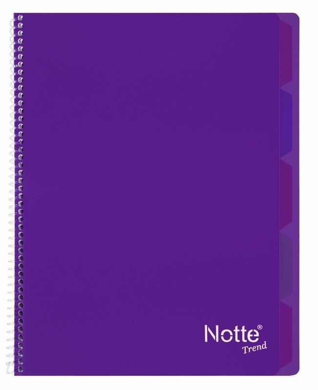 Kołozeszyt w kratkę C5 Trend marki Narcissus, wyposażony w 4 kolorowe przekładki, które można wyjmować i przestawiać w dowolne miejsce w zeszycie. Kolorowa okładka i przeźroczysta spirala są w całości wykonane z polipropylenu, dzięki czemu zeszyt jest trwały i odporny na zabrudzenia, a jednocześnie elastyczny i poręczny. Kartki z mikroperforacją dają się łatwo wyrywać. Kołozeszyt ma 100 kartek, papier o gramaturze 60. Produkt dostępny w 12-tu kolorach.