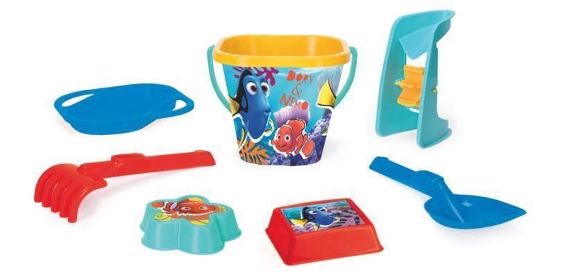 7-mio elementowy zestaw składa się z dwóch foremek i kwadratowego wiaderka wykonanych przy użyciu technologii IML (In Mould Label), gdzie zastosowana grafika jest wtopiona bezpośrednio w plastik, będąc w ten sposób nieusuwalną. W skład zestawu dodatkowo wchodzi również łopatka i grabki oraz sitko i atrakcyjny młynek. Całość wyprodukowana jest w Polsce, z wysokiej jakości tworzywa sztucznego, odpornego na warunki atmosferyczne, dzięki czemu zabawkę można przechowywać przez cały rok np. w ogródku czy na balkonie.