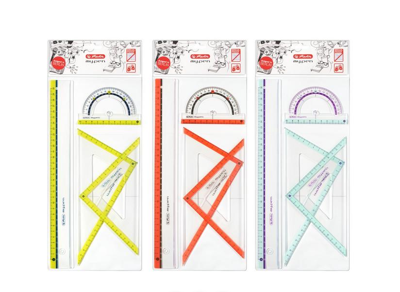 Komplet geometryczny My.pen 4 części: kątomierz linijka 30 cm 2 ekierki