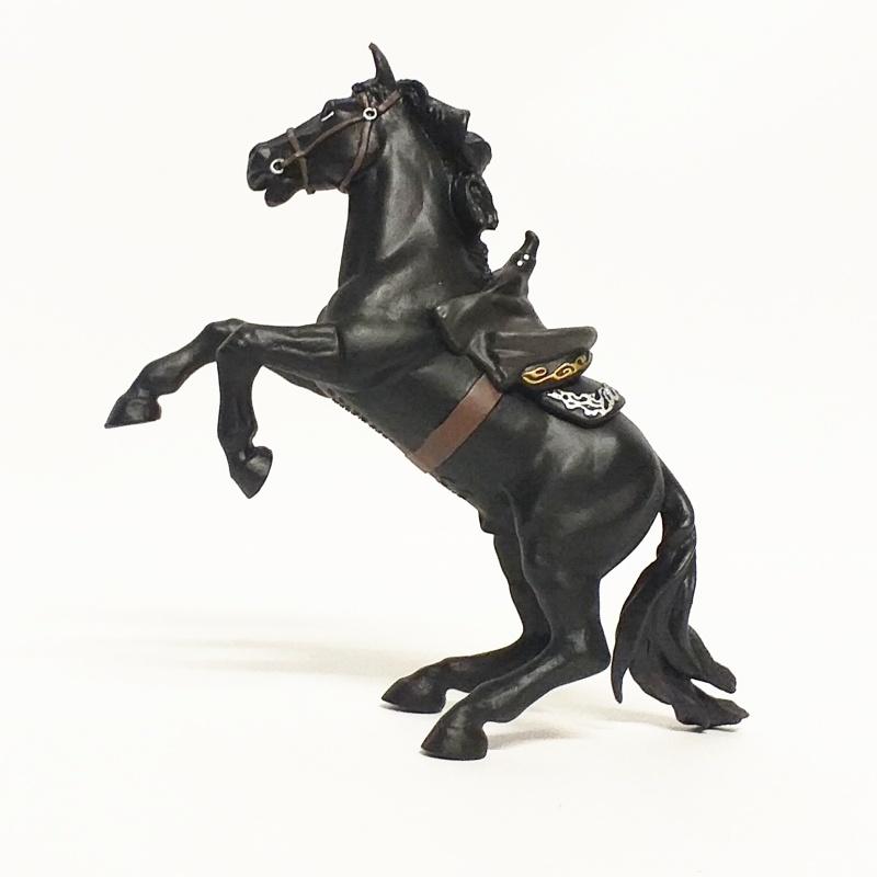 Tornado ukazany jest w pozie lewady, koń unosi przednie nogi, co dodaje mu dynamiki i żywiołowości. Siodło niezwykle dopracowane - od popręgu po ogłowie, dzięki czemu tworzy wierne odwzorowanie scenerii z legendy o Zorro. Elementy malowania - cieniowania włosia, połysk grzywy, odznaczające się detale siodła - wszystko ręcznie wykonane przez artystów Papo, co gwarantuje spójność i wysoką jakość typową dla figurek firmy Papo.