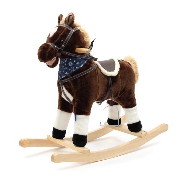 Konik na biegunach Baby Mix został zaprojektowany z myślą o dzieciach lubiących przygody. Przypomina prawdziwe zwierzątko, co sprawi, że dziecko poczuje się jak prawdziwy jeździec. Konik wykonany został z miękkiego pluszu. Bujak wyposażony jest w drewniane płozy, wyprofilowane w taki sposób, by nie dopuścić do przewrócenia podczas zabawy. Wygodne siodło, kantar, strzemiona, drewniane rączki i płozy zapewnią komfort i bezpieczeństwo podczas beztroskiego bujania maluszka. Konik Baby Mix posiada na szyi ozdobną apaszkę, a po obu stronach jego głowy umieszczono drewniane uchwyty. Zwierzątko podczas zabawy wydaje z siebie odgłosy galopu i porusza pyskiem oraz ogonem, a po naciśnięciu przycisku w jego uchu, odtwarzana jest kowbojska piosenka. Maluszek bawiąc się musi skoordynować ruchy z konikiem co stymuluje jego koordynację ruchową i rozwija wyobraźnię oraz poprawia poczucie równowagi. Schowek z bateriami ukryty jest pod brzuszkiem konika. Trzy baterie AA 1,5 V nie są dołączone do produktu. CHARAKTERYSYTKA: - drewniane rączki i płozy - strzemiona - stabilna konstrukcja - wyprofilowane siodło - kantar - interaktywne uszka - przeznaczona dla dzieci powyżej 18 miesięcy - do 25 kg wagi ciała - mięciutki materiał - konik posiada certyfikaty, atesty i deklarację zgodności CE - konik wymaga trzech baterii AA 1,5 V WYMIARY PERODUKTU: Wysokość 72 cm Długość płóz 72 cm Długość konika 55cm Szerokość 30 cm Wysokość do siedziska 50 cm Szerokość siedziska: 16 cm Waga: 2 kg