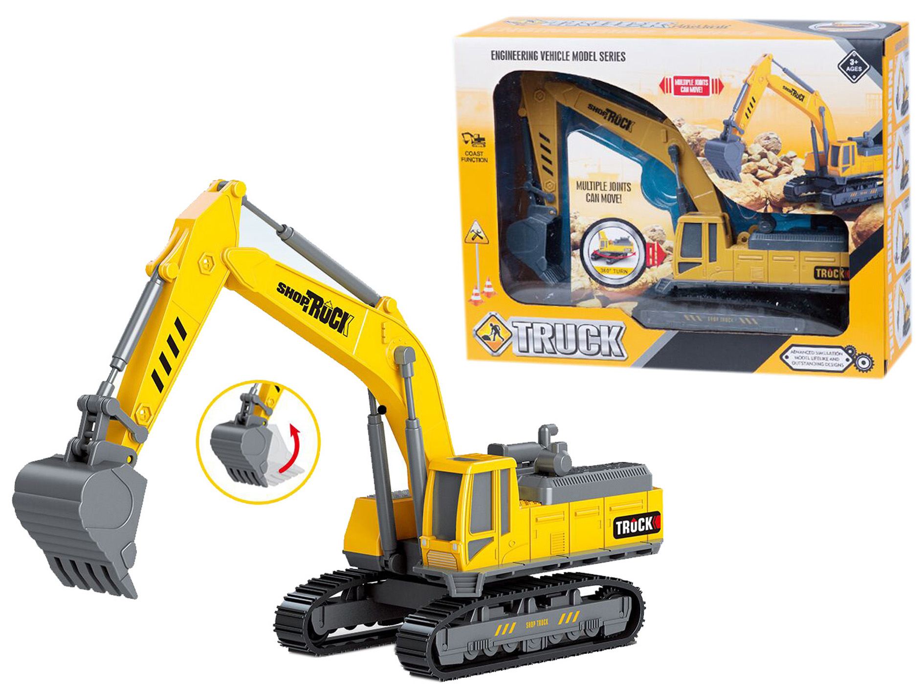 Koparka 24x8x17, obrót o 360 stopni z ruchomą łyżką.